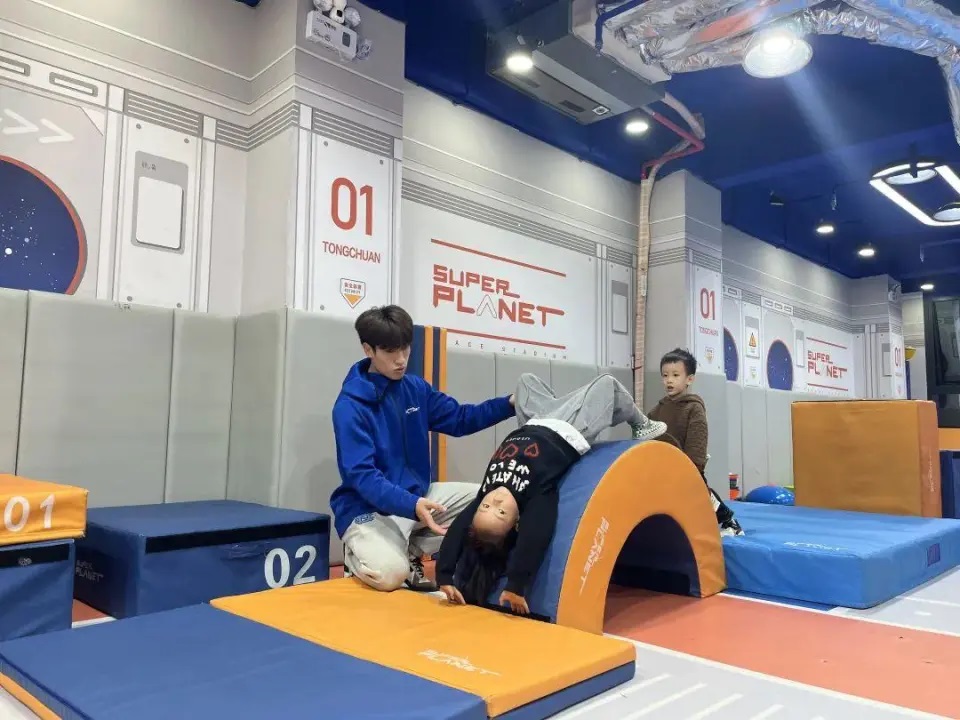 “现在,让我们化身成为灵动的小兔子,向前蹦蹦跳……”11月22日,记者刚踏入新区超能星球少儿智能运动馆,便看到门外的等候区坐满了满怀期待的家长,而孩子们正在馆内尽情享受体适能训练的欢乐时光。