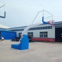 篮球架采用电动控制系统,液压系统。篮球架主体升降采用四连杆机构,电机采用220V、50HZ单相电源带动油泵,经微电脑控制系统使油缸产生伸缩运动,从而使篮球架立臂升降和箱体走轮起落。箱体前端为两个万向轮,后端为两个定向轮。